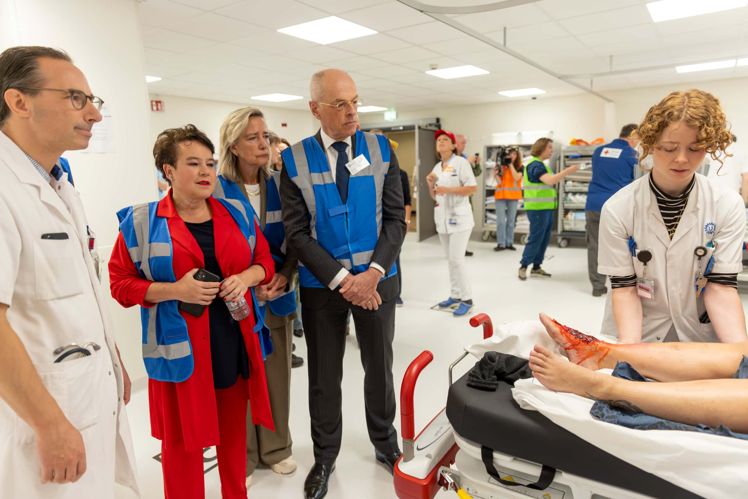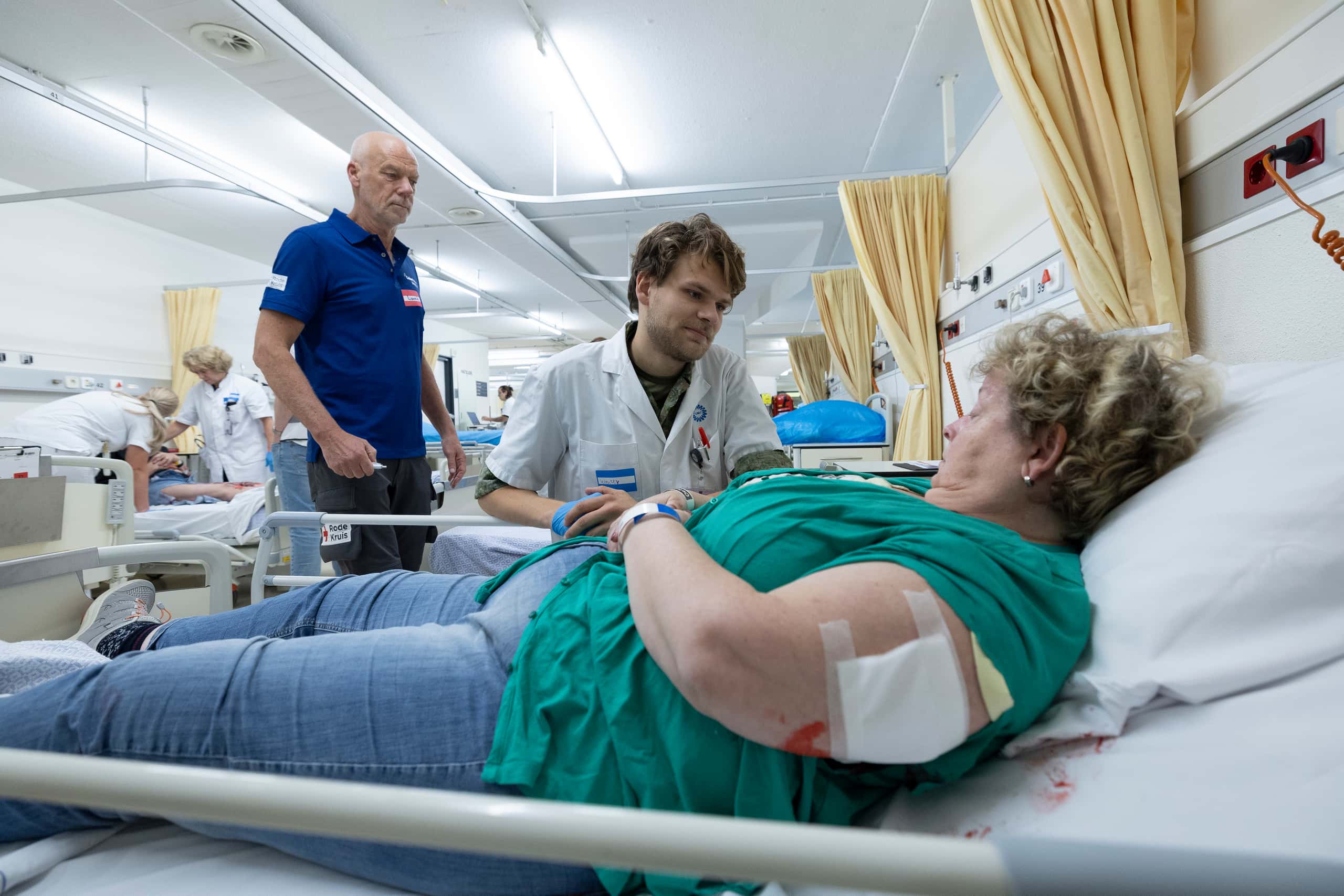 Goed voorbereid zijn doen ze onder andere door grote oefeningen te doen. Het scenario van de laatste oefening was een raketinslag op een gebouw. 160 slachtofferacteurs speelden de rollen van kinderen, volwassenen en militairen die gefaseerd binnenkwamen in het Calamiteitenhospitaal. Mirjam: "We kijken dan bijvoorbeeld wat voor letsel dat kan opleveren, maar ook wat er in de voorbereiding nodig is om langer open te moeten. Als er bijvoorbeeld een grote groep militairen naar Nederland komt. Eigenlijk willen wij niet langer dan vijf dagen open. Want de zorg in het UMC Utrecht moet afschalen omdat je veel personeel vraagt. En de omgeving is anders dan in een normaal ziekenhuis. Het is gericht op wat er medisch nodig is, je ligt dicht op elkaar. Het is dus niet comfortabel voor de patiënt om hier langer te liggen. Maar als het moet, dan moet het."